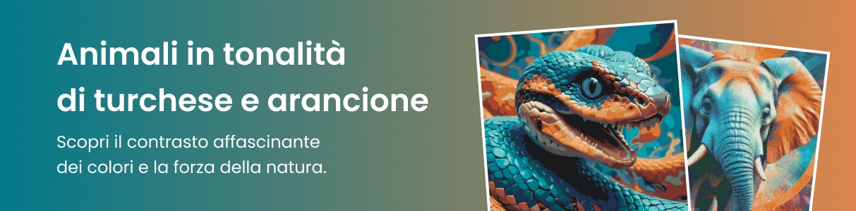 Animali nei toni del turchese e dell'arancione