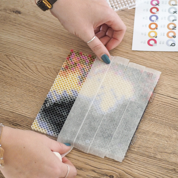 Quando avrai finito dovrai solo incollare le varie sezioni tra di loro e stirare le perline ricoperte da carta da forno con il tuo ferro da stiro. Il calore farà sciogliere lentamente le perline in plastica che si fonderanno e si mischieranno tra loro. Il risultato finale sarà un’opera d’arte sotto forma di mosaico colorato a tuo piacimento. Vuoi sapere esattamente cosa abbiamo in serbo per te? Dai uno sguardo alle nostre istruzioni passo dopo passo.