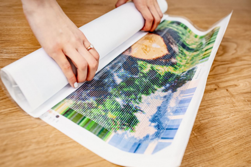 Si tratta di un procedimento facile: all’interno del tuo set troverai una tela a base di colla prestampata; quello che dovrai fare è semplicemente applicare i diamanti contrassegnati facendoli corrispondere ai simboli sulla tela. Sarà pratico utilizzare il pennino per diamanti, in quanto riesce a tenere fino a tre diamanti per volta. La punta adesiva, simile a una tavolozza per dipingere, ti aiuterà a non perdere i tuoi preziosi diamanti!
