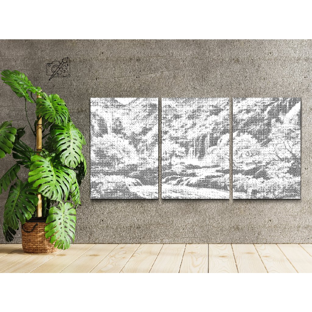 Puntinismo - Alberi in fiore accanto a una cascata (set di 3pz)