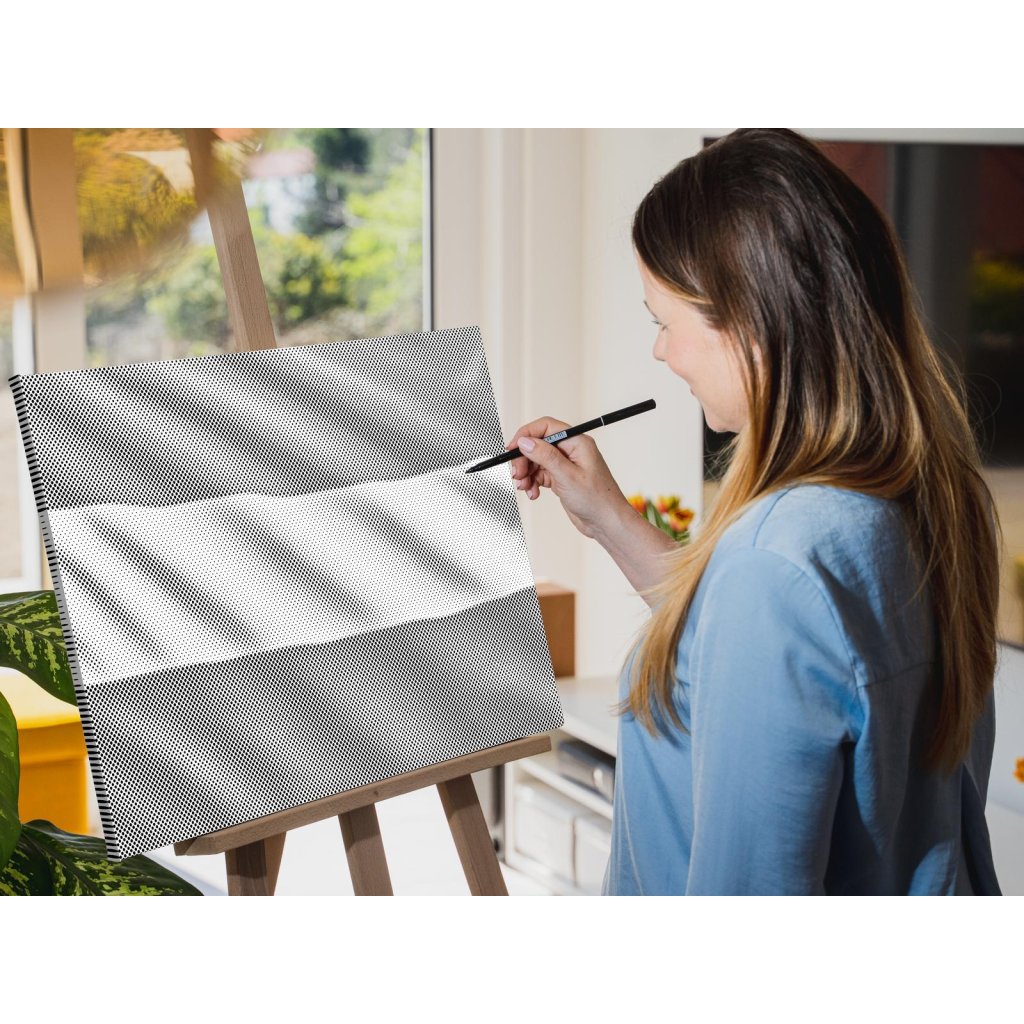 Crea il tuo nuovo quadro di design con i punti! Scegli un pennarello del tuo colore preferito e riempi con le tue tempistiche la tela di puntini prestampati. Se avrai scelto una variante con telaio, potrai appendere il tuo quadro direttamente al muro appena avrai finito. Garantita l'impressionante abilità artistica della pittura, pur avendo zero esperienza. Puntino dopo puntino arriverai a creare direttamente un’opera d'arte perfetta.