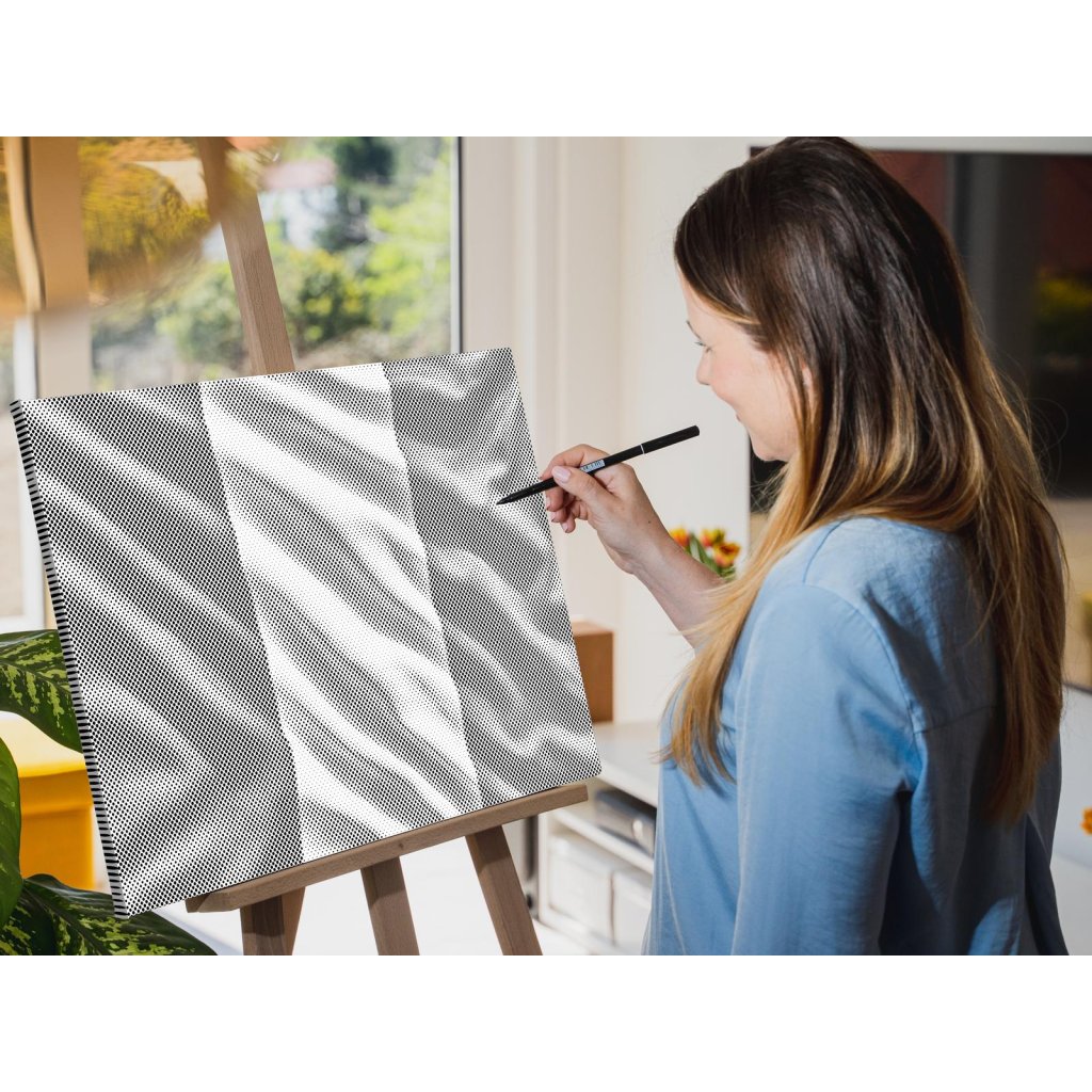 Crea il tuo nuovo quadro di design con i punti! Scegli un pennarello del tuo colore preferito e riempi con le tue tempistiche la tela di puntini prestampati. Se avrai scelto una variante con telaio, potrai appendere il tuo quadro direttamente al muro appena avrai finito. Garantita l'impressionante abilità artistica della pittura, pur avendo zero esperienza. Puntino dopo puntino arriverai a creare direttamente un’opera d'arte perfetta.