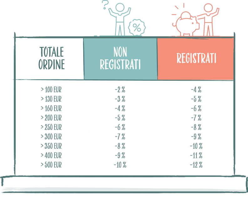 Gli sconti sui volumi possono essere usati in combinazione con gli sconti esistenti del programma fedeltà. Scopri di più sul nostro programma fedeltà qui.